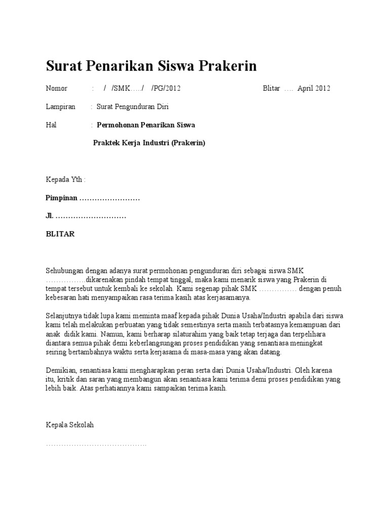 Contoh Surat Penarikan Siswa Pkl Pdf