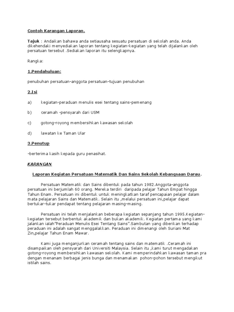 Contoh karangan laporan. 11 pada 16 september 2011 yang lalupeptes telah mengadakan aktiviti. Contoh soalan karangan laporan spm.